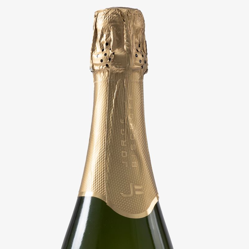 Apresenta-se de cor ouro branco, límpido e brilhante com reflexos levemente esverdeados e perlage fina e persistente.